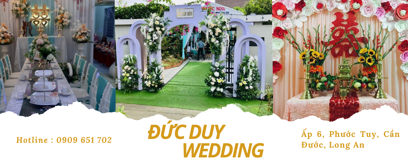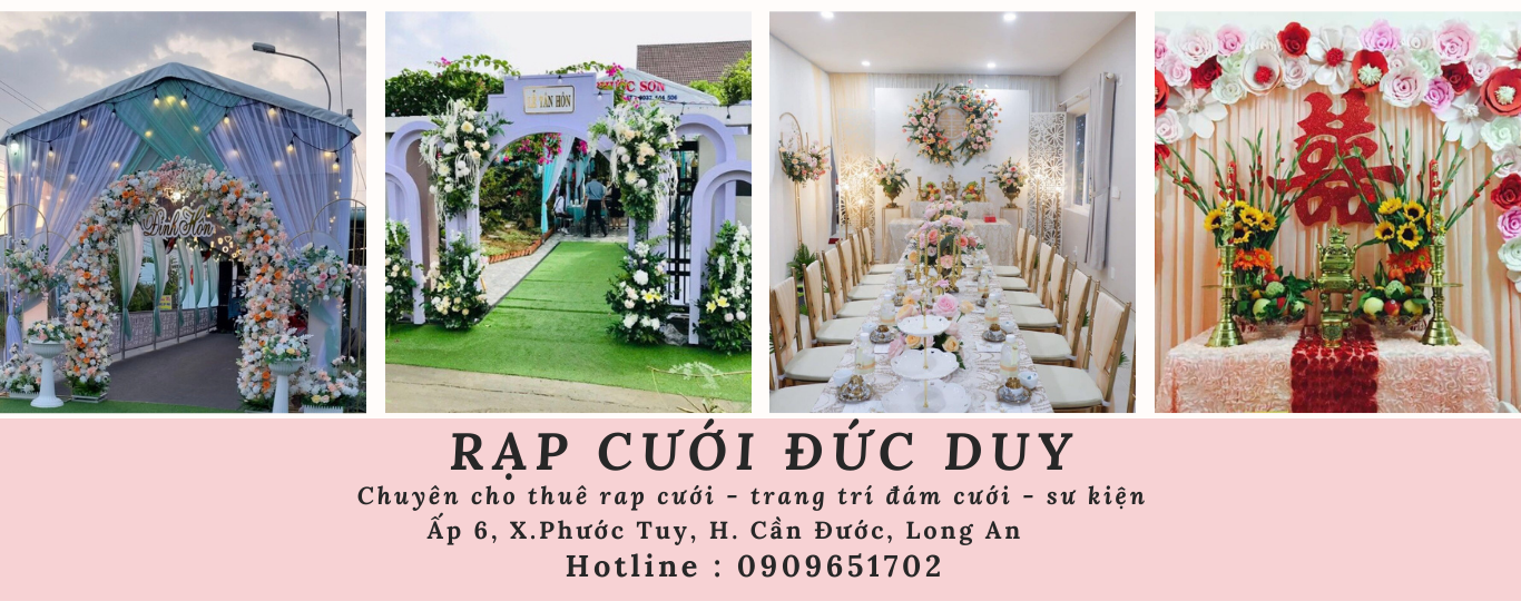 RẠP CƯỚI ĐỨC DUY là đơn vị chuyên cung cấp các dịch vụ trang trí cưới hỏi trọn gói giá rẻ, trang trí gia tiên giá rẻ tại Cần Đước - Long An .Với mong muốn mang đến cho khách hàng chất lượng dịch vụ tốt nhất đi kèm đó là giá cả hợp lý và cạnh tranh nhất tại Long An. Đó là những tiêu chí của Rạp cưới Đức Duy khi cung cấp các dịch vụ tới khách hàng. Hotline: 0909.651.702